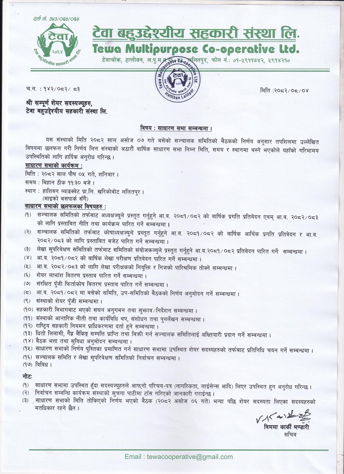 २०६४ साल श्रावण १६ गते ६ जना महिला र ३४ जना पुरुष गरी ४० जना सदस्यहरुको भेलाबाट प्रतिव्यक्ति एक-एक लाख शेयर पूँजीबाट स्थापना भएको संस्थाले, कम पूँजी तथा निम्न आय भएका श्रमिक, किसान, साना-व्यापारी, उद्यमी र सर्वसाधारणलाई सदस्यता प्रदान गरी सदस्यको आर्थिक जीवनस्तर उकास्ने काम गरेको छ । हाम्रो यस सहकारी संस्थाले आफ्ना शेयर सदस्यहरुलाई जन्मदेखि मृत्युपर्यन्त सेवा दिई रहेको छ, जसका कारण सहकारीले आफ्नो पहिचान स्थापित गर्न सफल भएको छ । तत्कालिन डिभिजन सहकारी कार्यालय ललितपुरमा २०६४ श्रावण १६ .....